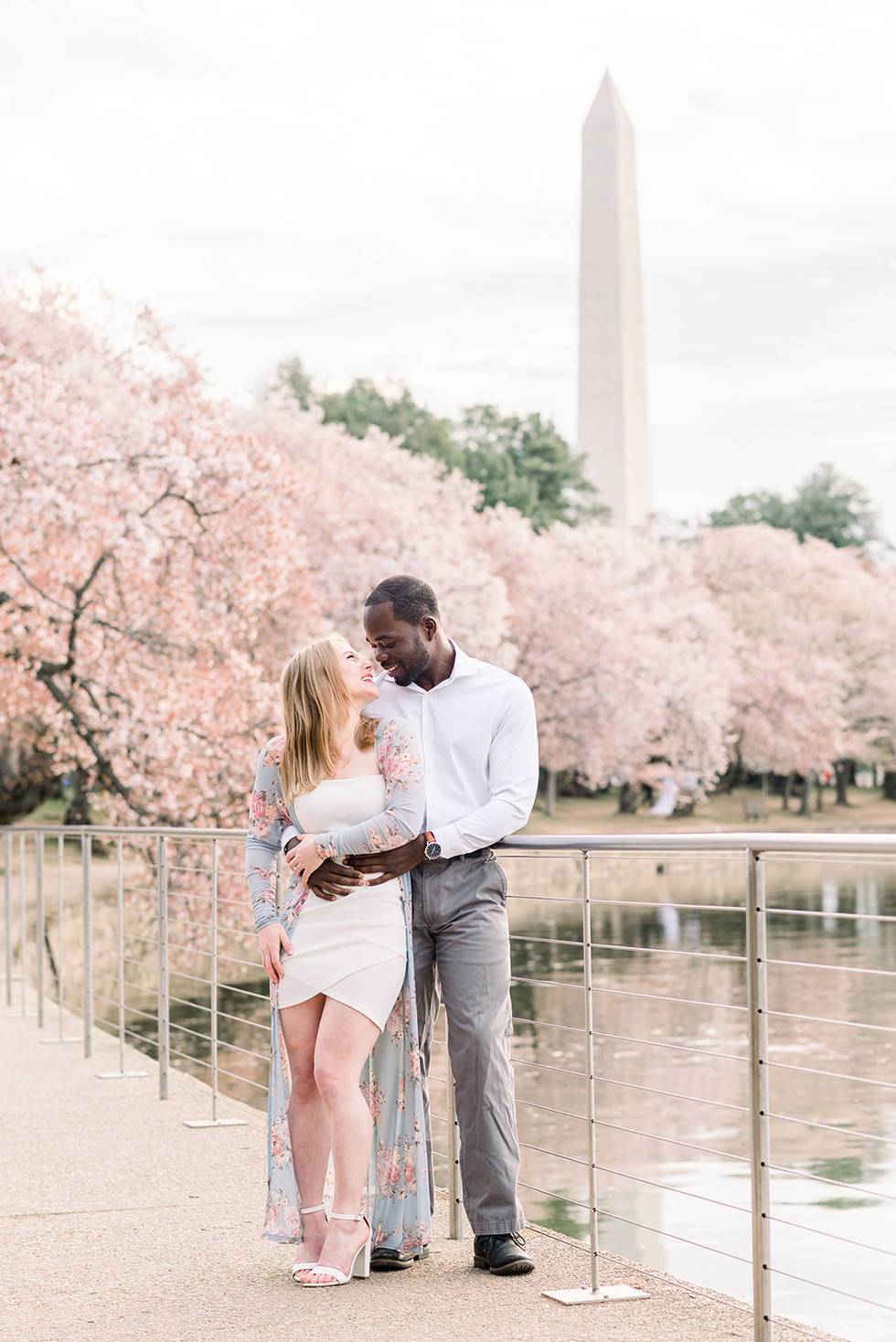 When Evie reached out for a cherry blossom engagement session, she described how special the DC monuments were to her and her fiancé Emmanuel and their story. The Tidal Basin was the perfect place to capture everything this couple loves about the city, from the famous cherry blossoms to the view of the Washington Monument and the steps of the Jefferson Memorial.